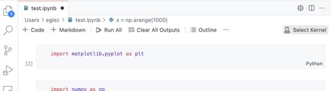 Open a local Jupyter notebook (a file with a .ipynb extension) and click on Select Kernel at the top right of the window: