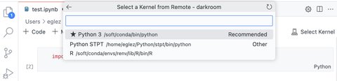 If the connection is succesful you will then be able to select the remote kernel to use to run your notebook: