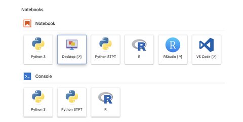 The remote desktop can be accessed from any web browser. In JupyterLab access the Launcher and click on Desktop.